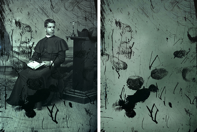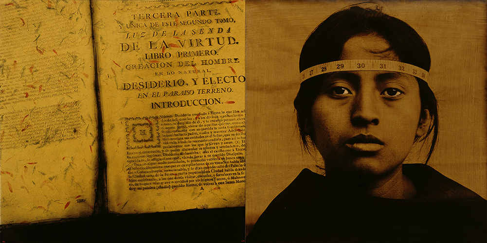 [^7] Como sucedía antes en las series La luz de la mente (2005) o Eternos presentes (2007), cuando las figuras humanas abandonaban los escenarios, en la serie Hesiquía (2012), las imágenes del fotógrafo pionero Juan de Jesús Yas son expurgadas de las efigies religiosas para dejar apenas el vacío que las sostiene.